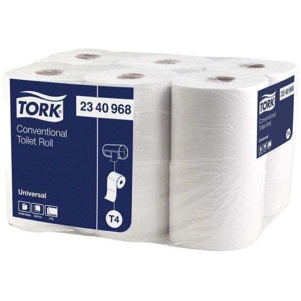 TORK T4 TOILET TISSUE 220 2 PLY PK/12. FSC Certified. White. 2 ply conventional toilet rolls, 220 sheets per roll, unwrapped. Pack of 12. For a case, order 4 packs for 48 rolls. Replaces 2170330. PRODUCT IS GOING TO DISCONTINUED REPLACEMENT IS MPH27210. PLEASE CONTACT STORE FOR FURTHER DETAILS