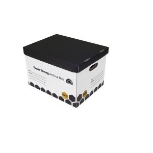 MARBIG ARCHIVE BOX SUPER STRONG SINGLE. Triple end walls and double layer base provides superior stacking strength for unmatched stacking capability up to 10 high. "Burst safe" double layer base ensures contents will not burst through when carried, even with full load. Holds foolscap manilla folders, or up to 3 L/A files, or 6 ring binders up to 35kg weight. External dimension 400L x 305W x 260Hmm. Made in New Zealand from recycled board.