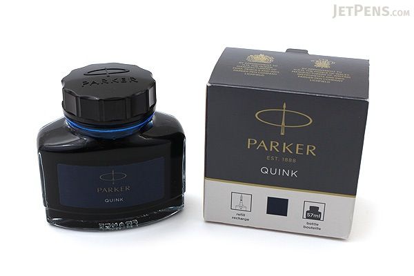 FOUNTAIN PEN INK PARKER QUINK BLUE PERMANENT. The Parker Quink Ink Bottle Permanent Blue is the Classic Liquid ink which is suitable for all piston fillable fountain pens in the Parker range. Contents: 50 ml bottle in a box.
