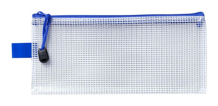 ICON MESH BAG PENCIL CASE 230X105MM. Icon Mesh Bags are made from strong, water-resistant, clear and flexible plastic PVC material. Includes a reinforced fabric mesh for extra strength and a sturdy, blue, fabric zipper closure. Pencil Case 230mm x 105mm size.
