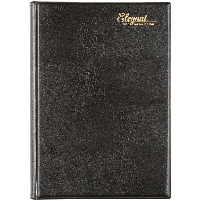 CUMBERLAND ELEGANT DIARY A5 2023 BLACK DAY TO A PAGE. Our Elegant Diary is equaly at home in the office or car. From the soft and luxurious feel of the vinyl padded cover to the durable section sewn pages. Available in A4 and A5 sizes. Packed with useful information including year planners and reference calendars. Includes Australian and New Zealand holidays and school terms. One day per page. Ribbon Bookmarker. 15 minute appointments 7:30am to 7pm, Monday to Sunday. Black.