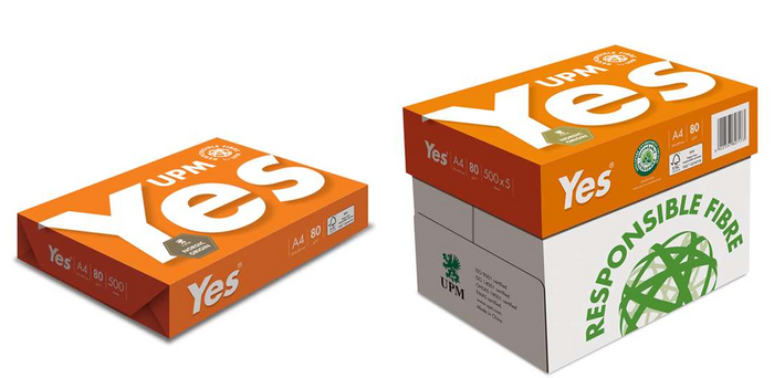 COPY PAPER YES A4 80GSM WHITE. YES is a high quality paper for everyday office use with excellent print performance and colour reproduction. Box contains 5 reams of 500's. Produced using FSC certified.