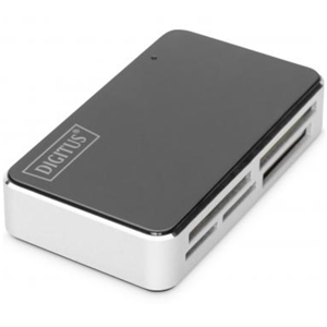 Digitus Card Reader All-in-one USB 2.0 DIGITUS Card Reader USB 2.0, black, All-in-One, supports T-Flash, incl. USB A/M to mini 5Pin cable The DIGITUS USB 2.0 "All-in-One" card reader makes it simple to transfer your digital content to a PC or Mac. The product gives you the ability to use nearly every type of memory card. It has a clear and elegant design with a piano-black finish on the top and bottom surface as well as an aluminium edge.