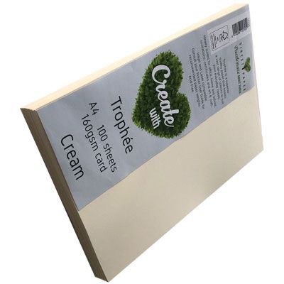 TROPHEE CARD A4 CREAM 210GM PK/100. Ideal for inkjet printers & laser printers/copiers Weight: 210gsm. Colour: Cream. Pack of 100 sheets.