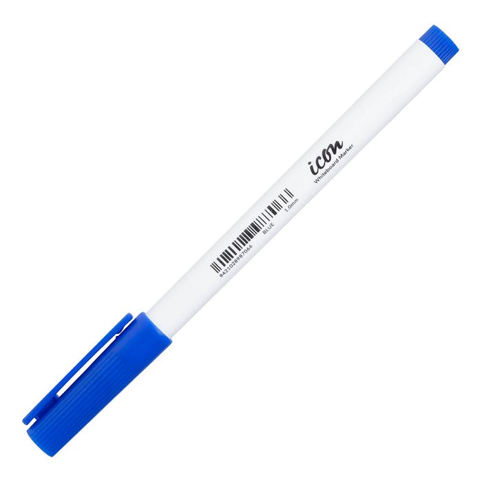 Icon Whiteboard Marker Slim Barrel Fine Tip Blue Icon Whiteboard Markers are great for use on whiteboards, dry erase boards, glass and non-porous surfaces. The thin barrel is great for smaller hands. The quick drying ink is easy to erase and removes without a trace. Blue. Fibre Bullet Tip.