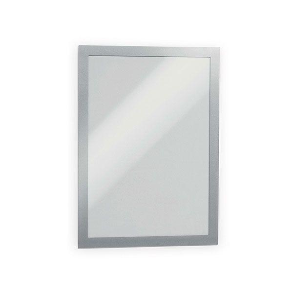 DURABLE DURAFRAME SELF-ADHESIVE SIGN HOLDER A4 SILVER PK2 DURAFRAME - The professional self-adhesive infoframe. Easy to use. Perfect for displaying notices, signage, safety information in any workplace or at home. Present information in a premium and professional way Quick insertion and exchange of documents via a fold-back magnetic frame Easy to attach to smooth, solid surfaces and can be removed from glass Areas of application: Great for displaying documents e.g. room identification, promotional signage, When applied to glass, information can be read from both sides Frame looks identical from both sides Can be used in both portrait and landscape formats