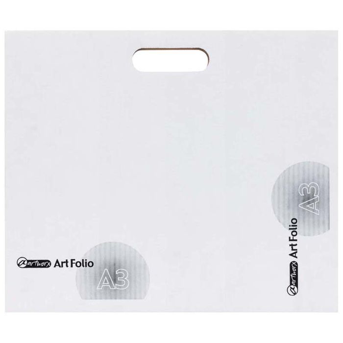 ARTWORX ART FOLIO A3 CARDBOARD WHITE. IDEAL FOR STORING ARTWORK. MADE FROM CORRUGATED CARDBOARD AND FEATURES A CLOSING TAB AND CARRY HANDLE.