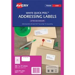 AVERY MULTIPURPOSE LABEL PHOTO GLOSS 1UP L7767 PK25. These multipurpose white glossy labels are made from a thicker photo quality material so text and graphics will really stand out. It dosent matter what size you need, these A4 labels for colour laser printers can be cut down to size or used as a large label. Ideal for mailings, messages, invitations and announcements. Smooth surface ensures safe passage through the colour laser printer. Permanent adhesive. Dimensions: 289.1(H) x 199.6(W)mm. 25 sheets per pack, 1 label per page. Avery code 959767.
