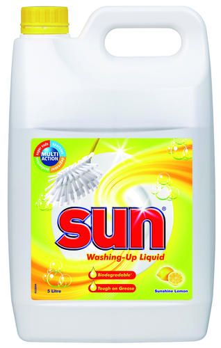 DISHWASH LIQUID SUN LEMON 5L . Sunshine Lemon. Biodegradable. Tough on grease.