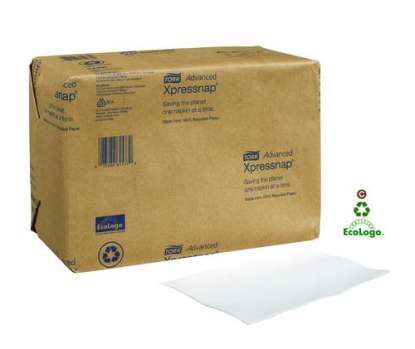 NAPKIN XPRESSNAP TORK WHITE PKT/500. Use with 3014716 dispenser. Tork Xpressnap Tabletop Dispenser, ideal for limited service restaurants that offer serviettes at the table. This compact and modern dispenser delivers napkins one-at-a-time, improving hygiene and reducing napkin consumption up to 25% when compared to traditional dispenser napkin systems. Available in a broad range of contemporary colours, matching your decor is easy. The fibre composition in the product is 100 % recycled. This product is approved for EcoLogo and Green Seal ecolabel. Specifications: 1 ply. Dispenser folded 21.6x33cm.