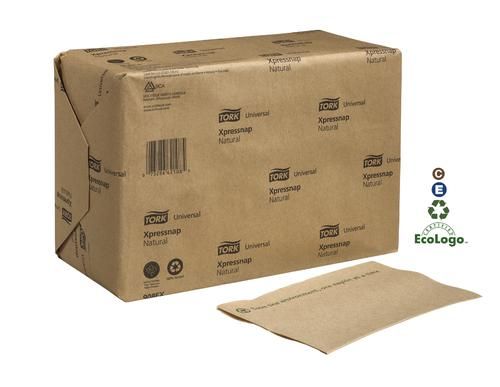 NAPKIN XPRESSNAP TORK NATURAL PKT/500. Use with 3014716 dispenser. Tork Xpressnap Tabletop Dispenser, ideal for limited service restaurants that offer serviettes at the table. This compact and modern dispenser delivers napkins one-at-a-time, improving hygiene and reducing napkin consumption up to 25% when compared to traditional dispenser napkin systems. Available in a broad range of contemporary colours, matching your decor is easy. The fibre composition in the product is 100 % recycled. This product is approved for EcoLogo and Green Seal ecolabel. Specifications: 1 ply. Dispenser folded 21.6x33cm.