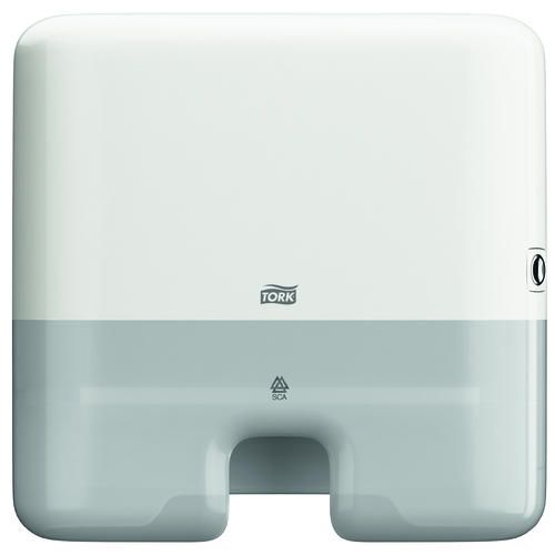 HAND TOWEL DISPENSER TORK H2 WHITE MINI. H2 cut sheet hand towel dispenser. Suitable for environments that demand both comfort and hygiene - such as restaurants, offices and healthcare facilities. Capacity of 450 towels. Tork Elevation Range. Previously Slimline or Interfold. Dimensions WxDxH 302x101x295mm. Use with towels 3022407, 3013866 and 3022692. This dispenser is available on loan at nominal cost when you purchase the towels. Ask us for details.