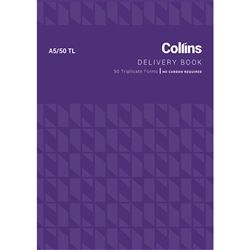 DELIVERY BOOK COLLINS A5/50 TL 50 TRIPLICATE CARBONLESS . 210x148mm, 50lf, 150 sets, triplicate. soft cover. No carbon required. 6 figure sequential numbering. Essential for recording delivery details and signatures for proof of delivery.