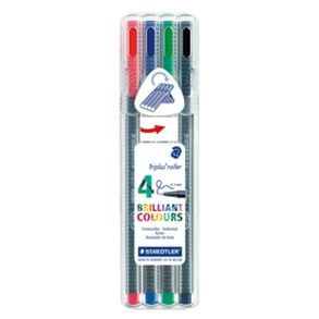 ROLLER BALL PEN STAEDTLER 403 SB4 SET/4 0.3 MM TRIPLUS . Ergonomic triangular shape for relaxed and easy writing. Pressure-stable, long life metal tip. Pleasantly smooth writing. Suitable for carbon copies. DRY SAFE can be left uncapped for days without drying up (Standard atmosphere according to ISO 554). Water-based ink. Stand-up STAEDTLER box. Airplane-safe - automatic pressure equalization prevents pen from leaking on board aircraft. Line width approx. 0.4 mm.