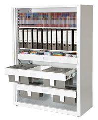 TAMBOUR VERDE SPACIO 5 TIER 1200W. The essential office storage cabinet, Verde Spacio offers options of 5 heights and 2 widths. Along with size, you can choose from a range of accessories to go into these cabinets, giving you the flexibility to configure the storage place to your requirements and store your paper, records, files, media, stationery etc. all in one place. Product Features: Fully powder coated case with polypropylene tambour doors. Made in New Zealand. Lockable Door. Available in standard powder coat colours. Verde tambours are 97.5% recyclable at end of life. Lifetime Warranty. 5 Tier Dimensions: External 1630H x 1200W x 500D. Internal 1530H x 1060W x 450D.