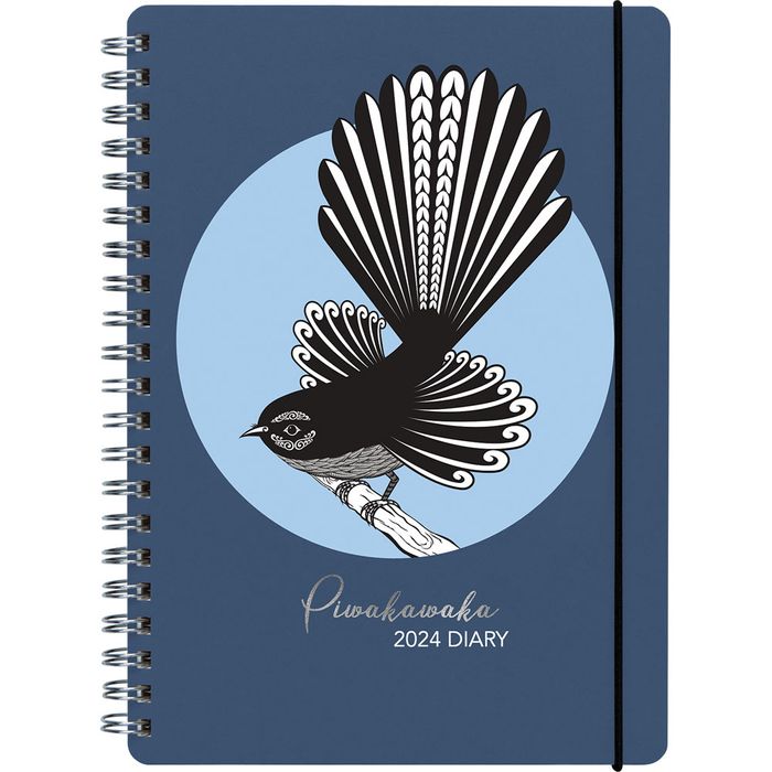 Collins Diary A51 Wiro New Zealand Birds Piwakawaka Even Year p>Day to view, full day Sat/Sun. Wiro bound, printed hard cover.
