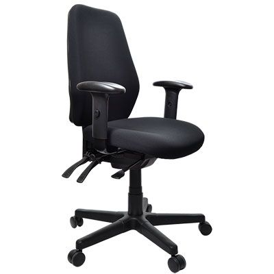 Office Chair Buro Aura Black With Arms Highback. Buro guaranteed to: 150kg.. Buro indicative daily sitting hours: 8+ Adjustable seat height. Ratchet height adjustable back/lumbar. Independently adjustable seat tilt- free floating or lockable.. Independently adjustable back tilt- free floating or lockable. Depth adjustable seat slide. Polyurethane moulded foam. Metal/reinforced base. Meets Australian/New Zealand StandardAS/NZS 4438:1997 height adjustableswivel chairs. 60mm twin wheel castors. Supported by the internationallyrecognised Global GreenTagCertTM. Delivered in a box ready to assemble.
