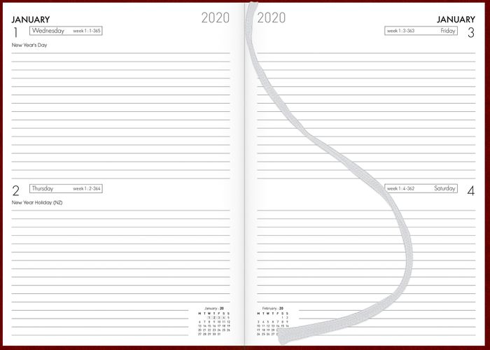 COLLINS DIARY A52 RED EVEN YEAR COMMERCIAL. A5 portrait. 2 days per page. Ribbon marker. Sewn, hardcover, book cloth cover.