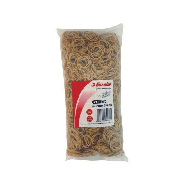 ESSELTE RUBBER BANDS NO.35 500GM. Esselte Superior Rubberbands are manufactured with the highest quality natural rubber. They are made in one piece for greater strength and are smooth and uniform in thickness. 500 gram Bag.