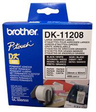 LABEL PRINTER LABEL P-TOUCH DK11208 BROTHER LARGE ADDRESS. This white 38mm x 90mm tape has 400 large address labels per roll and is suitable for use with our QL500W, QL700, QL720NW, QL580N, QL650TD and QL1050 label printers. Brothers DK tapes are a variety of convenient, pre-cut labels. They come in different shapes and sizes commonly used for mailing and administrative applications. DK tapes can be used with all QL label printers: QL500W, QL700, QL720NW, QL580N, QL650TD and QL1050.
