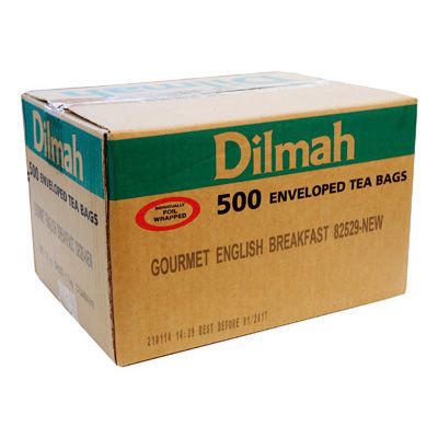 TEA BAGS DILMAH ENG/BR ENVELOPED BX/500. 100% pure Ceylon single origin tea. English Breakfast. Individually foil enveloped. Box of 500 tea bags .