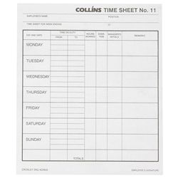 COLLINS WAGE TIME SHEETS NO.11. 187X220MM 100 LEAF.
