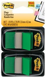 POST IT FLAGS 680-GN2 GREEN PKT/100 . Sticks securely, removes cleanly without damage. Easy to write on. 25mm x 44mm