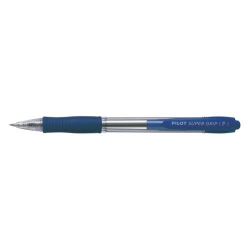 PILOT SUPERGRIP BALLPOINT PEN FINE BLUE RETRACTABLE . Slip-proof rubberised grip. Oil based ink for smooth writing. Ergonomic. Refillable. Sold singly and in packs of 12. Ergonomic