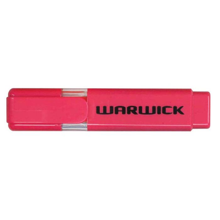 WARWICK HIGHLIGHTER STUBBY PINK. The Warwick Stubby highlighter is ideal for school or office use. It has fast drying ink that is light and will not smudge inkjet printing. Warwick highlighters use non toxic ink that is safe to use. The plastic barrel has a clear view section. Chisel tip, line width 2mm - 5mm. Long lasting. Sold in singles. Boxed in 10's.