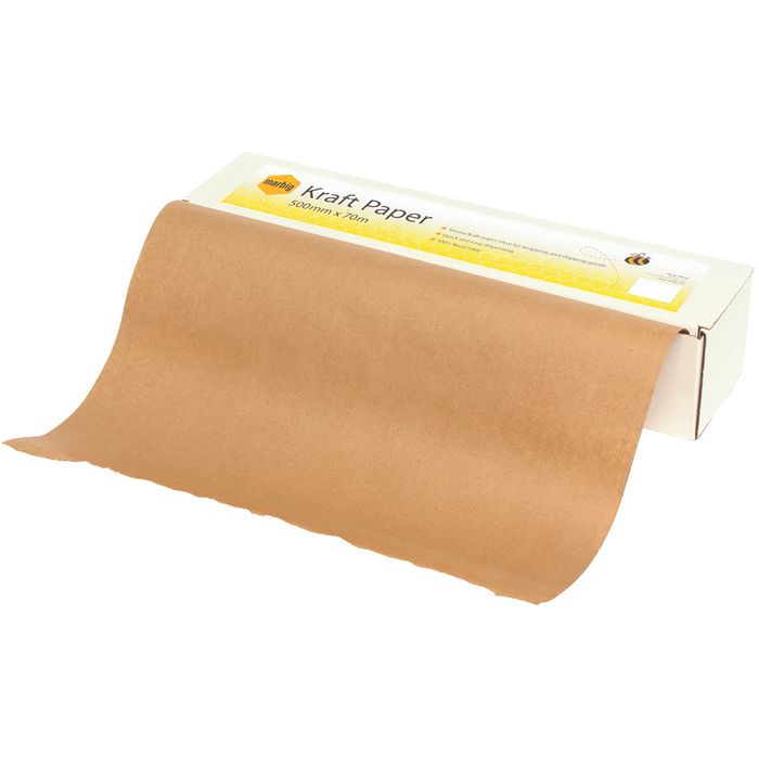 MARBIG KRAFT PAPER ROLL DISPENSER 500MMX70M . Strong kraft paper ideal for wrapping and shipping goods. Excellent for wrapping boxes, parts or interleaving. Quick and easy dispensing. Made from 100% recyclable kraft paper.