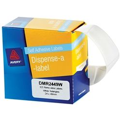 AVERY RECTANGLE LABEL 2449W PKT/325. White Dispenser Labels, Rectangle 24 x 49mm, 325/Pack . General purpose labels Dispenser pack for ease of use Great for often repeated tasks when you require easy access to labels Removable adhesive