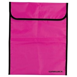 HOMEWORK BAG WARWICK FLUORO PINK LARGE. 360mm X 290mm large book bag, ideal for books and notebooks, with a hook and loop fastening.