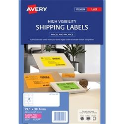 AVERY FLUORO LABELS L7163FP 14 UP PINK. High visibility shipping label. Ideal for marking documents, and files that need special attention and for labelling products and packaging for selling or shipping. 99.1 x 38.1 mm. B&W laser. Permanent adhesive. Paper material. 25 sheets per pack. 14 labels per page. 350 labels per pack . Avery Code 35957.