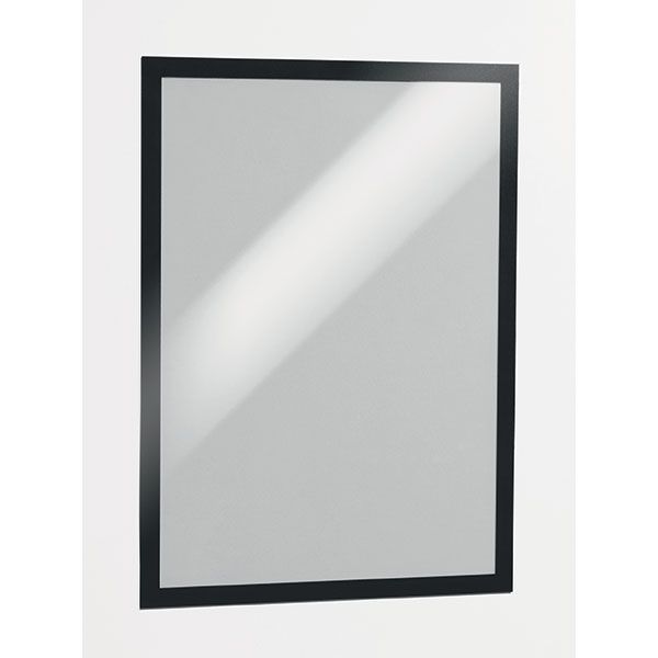 DURAFRAME SIGN HOLDER A3 BLACK PKT/2. Colour: Black. Self-adhesive information sign with a folding magnetic front panel. Can be adhered to any smooth, solid surface such as windows, filing cabinets. When applied to windows, the information can be displayed and read from both sides. Can be repositioned without leaving residue. It can be used in either portrait or landscape format. Heat resistant up to 70 degrees and UV resistant for up to 2 years.
